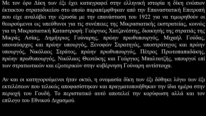 Η Δίκη των «Έξι» ως κορύφωση του Εθνικού Διχασμού: Τιμωρία προδοτών, διεκπεραίωση λογαριασμών ή δικαστικός κανιβαλισμός;