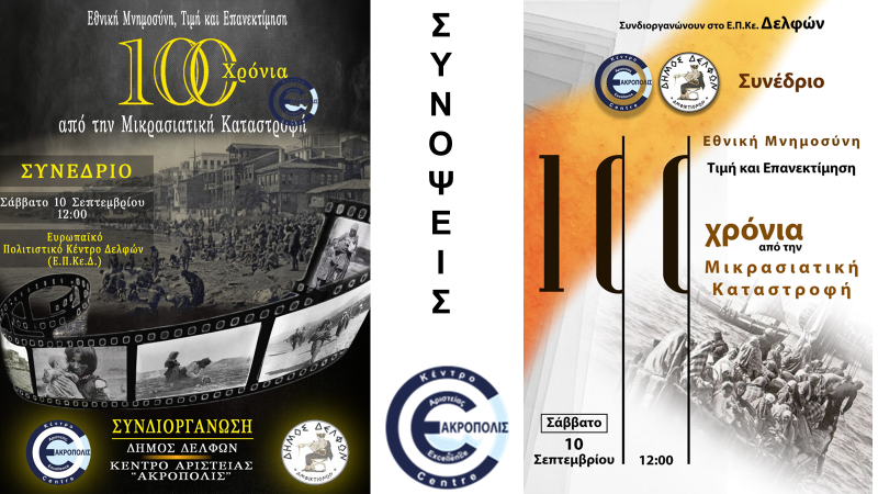 https://www.youtube.com/watch?v=y7ktofc7HBQ Coe Acropolis Delfi Conference 2022-09-10 -Debriefing – YouTube Απολογισμός Συνεδρίου!Κέντρο Αριστείας Ακρόπολις και ο Δήμος Δελφών συνδιοργανώνουν συνέδριο με θέμα: «Εθνική Μνημοσύνη, Τιμή και Επανεκτίμηση για τα 100 Χρόνια μετά την Μικρασιατική Καταστροφής.