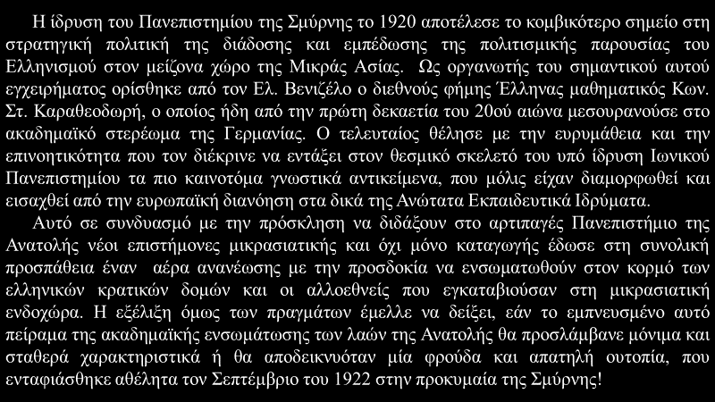 Καθηγητής Θ. Χρήστου: Η ίδρυση του Πανεπιστημίου της Σμύρνης και ο Κωνσταντίνος Στ. Καραθεοδωρή