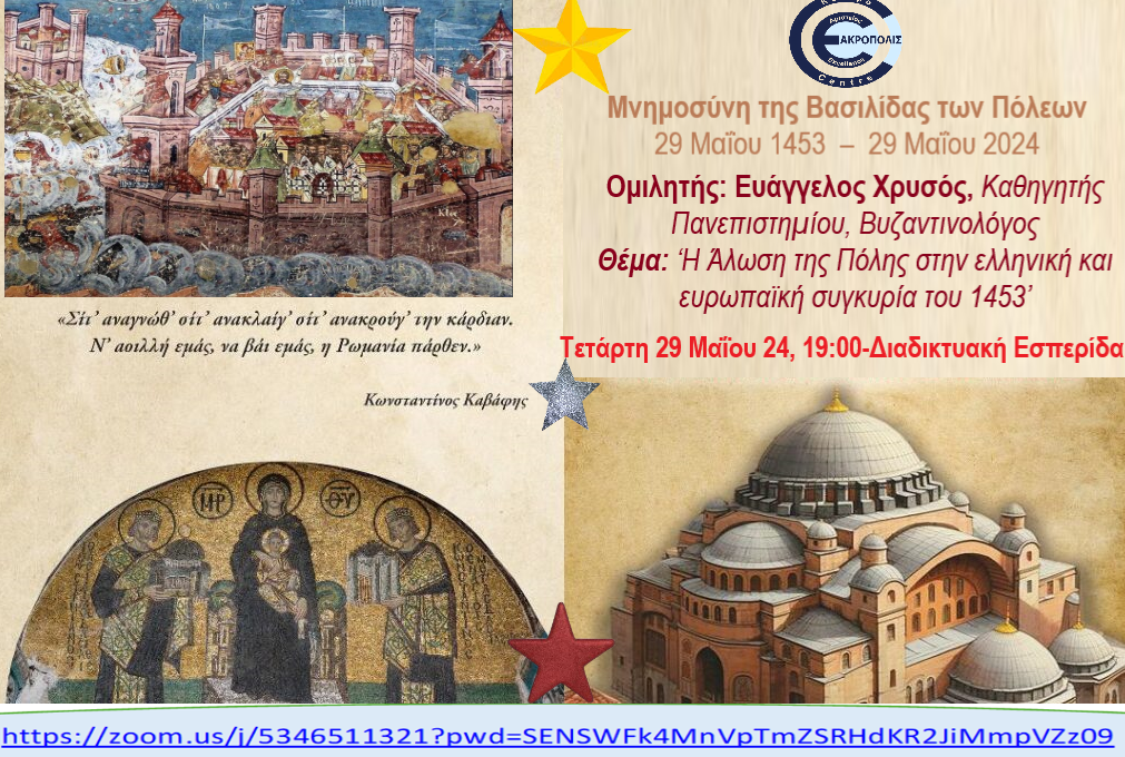 Η 29 Μαΐου 1453 μία μέρα που ο Ελληνισμός και η Χριστιανοσύνη, η Ευρώπη και η Ρώμη δεν θα ξεχάσουν ποτέ. Ο Κων/νος Παλαιολόγος με την ηρωική του στάση διέσωσε την Αξιοπρέπεια μας και η μνήμη του κράτησε το Έθνος όρθιο τα επόμενα μαύρα 400 χρόνια της σκλαβιάς. Η Ελλάδα κοιτίδα του πολιτισμού και διαφύλαξης των ιδεωδών της Δημοκρατίας, της Χριστιανοσύνης είναι παράλληλα και παράγον σταθερότητας στην ταραγμένη περιοχή της Ανατολικής Μεσογείου και όχι μόνο. Αξίζει να θυμόμαστε πάντα την ιστορία μας και να διδασκόμαστε από αυτή. Γιατί όποιος διδάσκεται από την ιστορία του δεν έχει μόνο παρελθόν, αλλά παρόν και μέλλον.